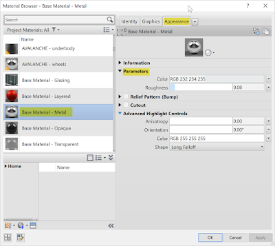 Nell’immagine sopra, notare i cinque materiali di base che sono tutti basati sui materiali avanzati più recenti. Questi sono i cinque shader fondamentali forniti da Revit e vengono definiti collettivamente “materiali avanzati”, li trovate nella libreria aspetti e poi su VARIO